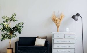 Many of today’s homes feature a neutral color palette of soft grays, whites and beiges. A bold, bright and eye-catching fabric on accessories like throw pillows and rugs give the space instant drama. Select florals, graphic patterns or bold geometrics in black and white to attract attention. Paint one wall in an interesting color, or add texture with natural brick or stone.